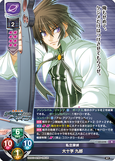 | [プリンシパル][ジャンプ:[0]] [誘発] このキャラが効果以外で登場したとき、元のDMGが4以上の味方[宙]キャラが登場している場合、1枚ドローまたは自分のゴミ箱または自分のデッキから「ネクロノミコン」1枚を探し無償で配置できる。コストが7点以上の味方[宙]キャラ1体にAP+3またはDP+3または未行動にできる。未行動にしたとき、そのキャラを味方DFに移動または味方DFキャラ1体と入れ替えることができる。味方キャラ全てのDMGを0にする。 [宣言][切札] [0]:自分のデッキが20枚以下の場合、自分のデッキをランダムに6枚まで回復しシャッフルする。 ※このカードは正誤訂正の対象となっています。(2025/10/30) | |||||||||