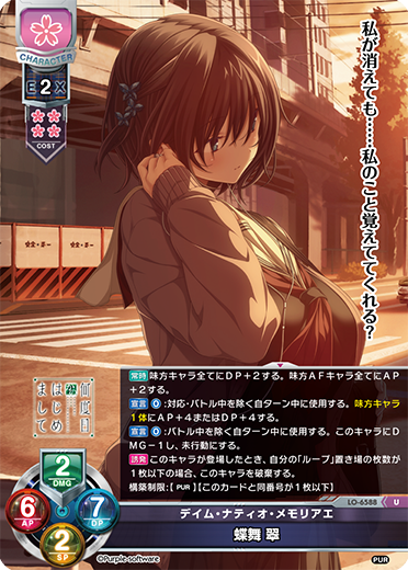 | 1 | LO-6588 | デイム・ナティオ・メモリアエ 蝶舞 翠 | U | PUR |