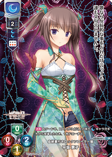 再録キャンペーンにて「Ver.パープルソフトウェア1.0」から収録された《血統書付きロックンローラー 平坂 景子》はドローソースとして機能するキャラです。序盤の足りない手札を補充できるので、できるだけ1ターン目に登場しましょう。
