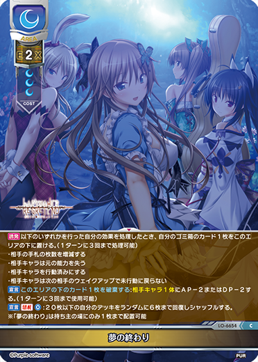 《ドSな自称妹 蓮乃 咲》《金髪美人な帰国子女 弥生・B・ルートウィッジ》などのキャラの登場時にドローまたは《夢の終わり》の配置が可能です。