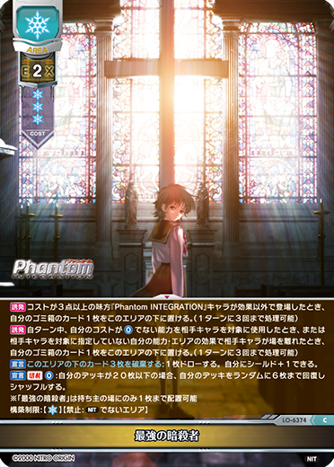 [誘発] コストが3点以上の味方『Phantom INTEGRATION』キャラが効果以外で登場したとき、自分のゴミ箱のカード1枚をこのエリアの下に置ける。(1ターンに3回まで処理可能)