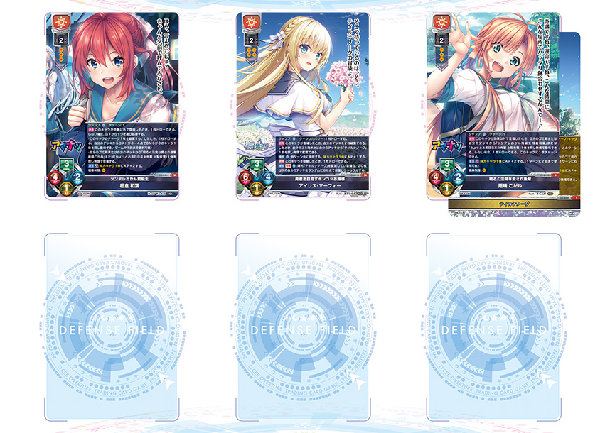 このデッキは3つのタイトルのカードで構成されるデッキであり、1キャラ目は『夢幻のティル・ナ・ノーグ』より《勇者を目指すポンコツお嬢様 アイリス・マーフィー》です。配置できるエリア《ティルナノーグ》は、このデッキのキーカードとなるエリアとなっています。